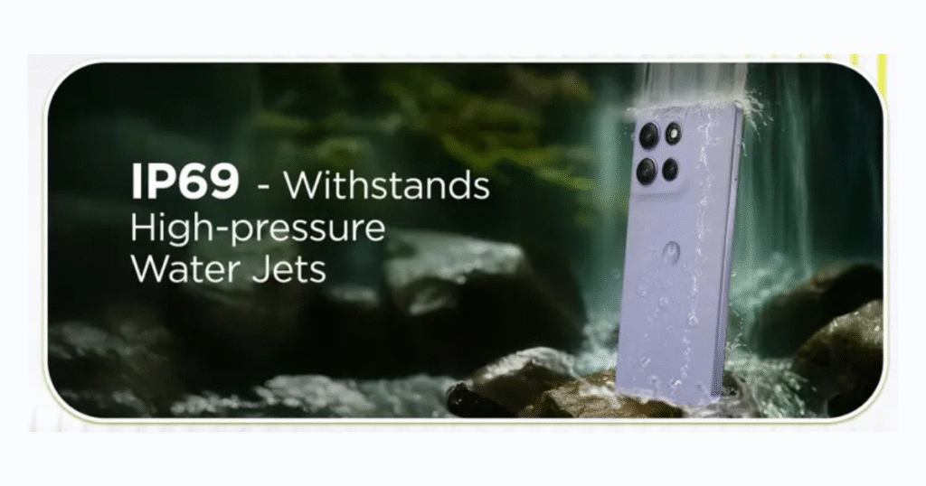 Motorola G86 Power 5G বডি ডিজাইনের কথা বলতে গেলে এখানে পেছনে ভেজেন্ট লেদার এর ফিনিশিং দেয়া রয়েছে এবং বডিটি হচ্ছে প্লাস্টিকের এবং সামনে কলিং গরিলা গ্লাস সেভেন আই এর সুরক্ষিত রয়েছে সঙ্গে রয়েছে আই পি 68 এবং ip69 রেটিং যার কারণে এই স্মার্টফোনটি ধুলোবালি এবং জল থেকে অনেকটা সুরক্ষিত থাকে।